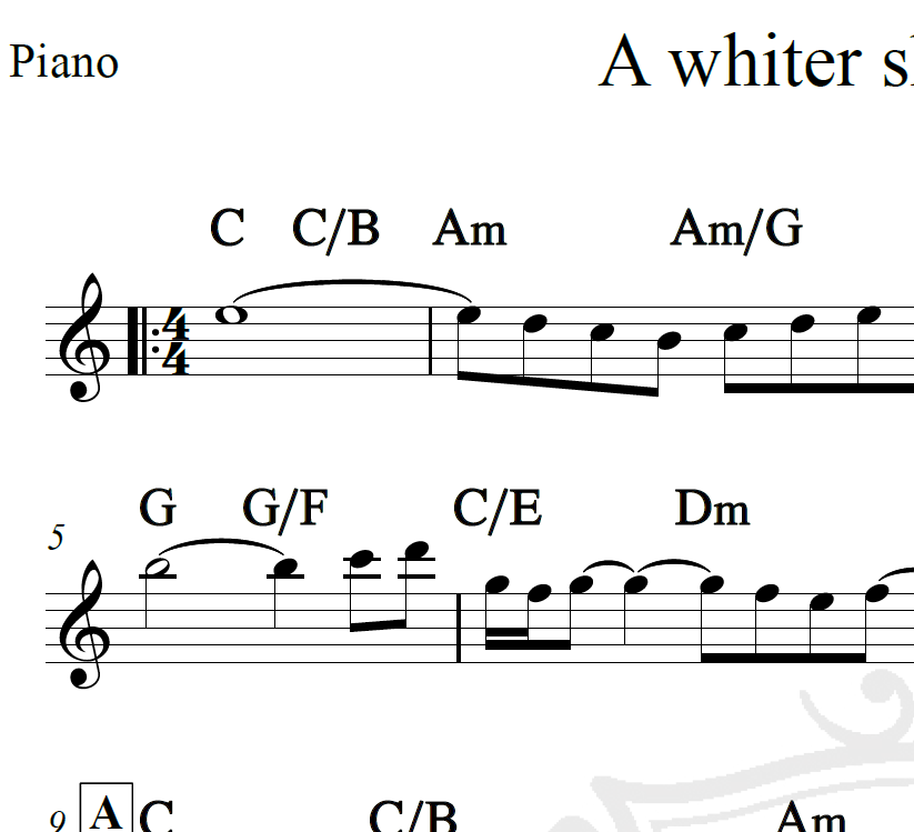 A whiter shade of pale – Procol Harum – Piano/Vocal