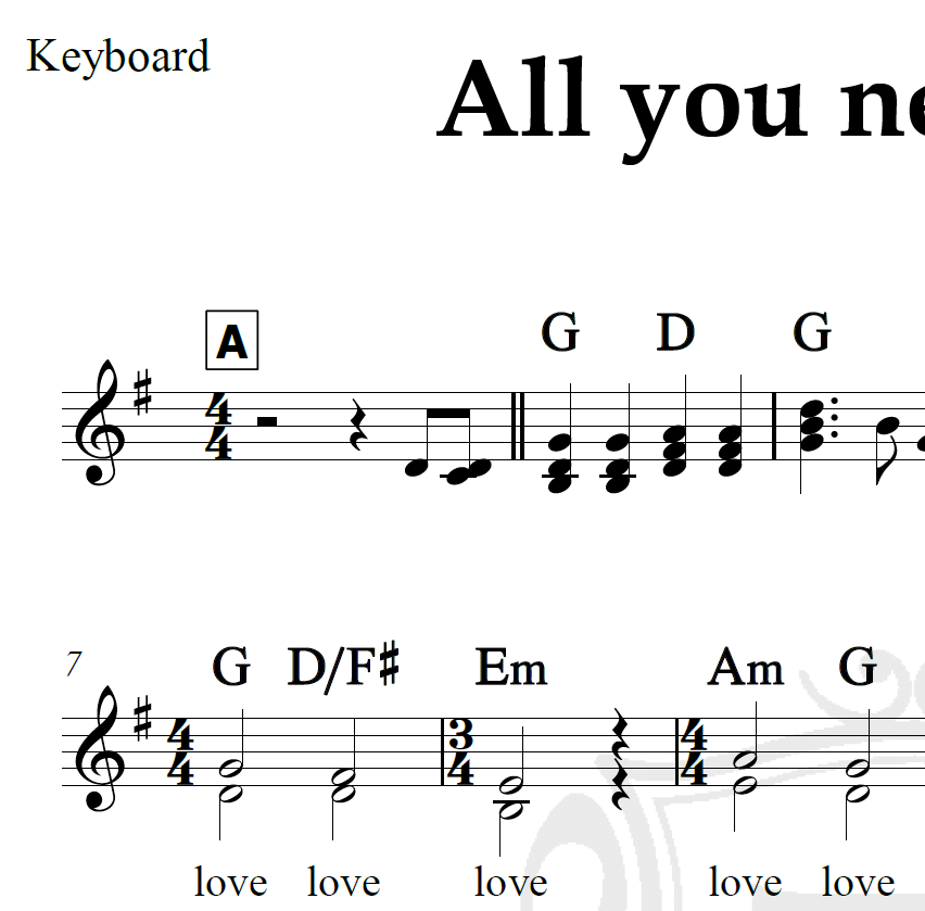 All you need is love – The Beatles – Piano/Vocal