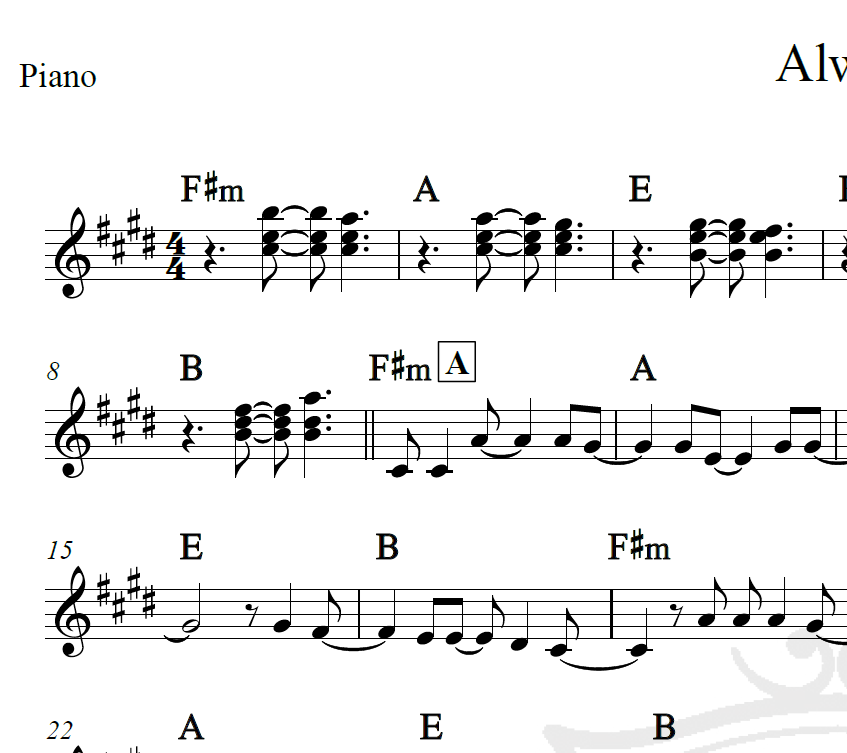 Always – Gavin James – Piano