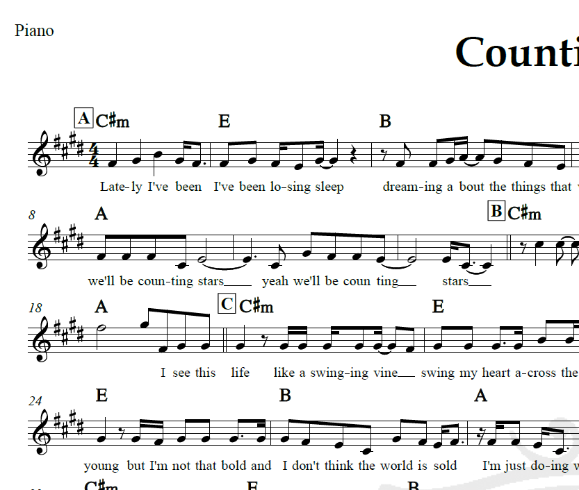 Seja o primeiro a avaliar “Counting Stars – One Republic – Piano/Vocal”