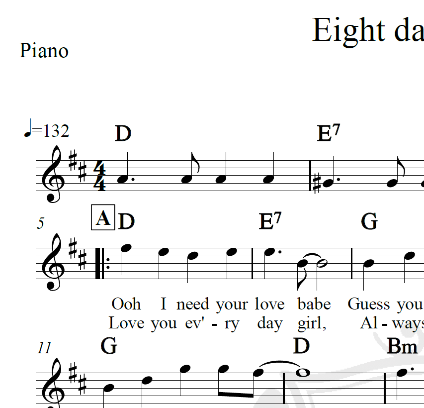 Eight days a week – The Beatles – Piano/Vocal