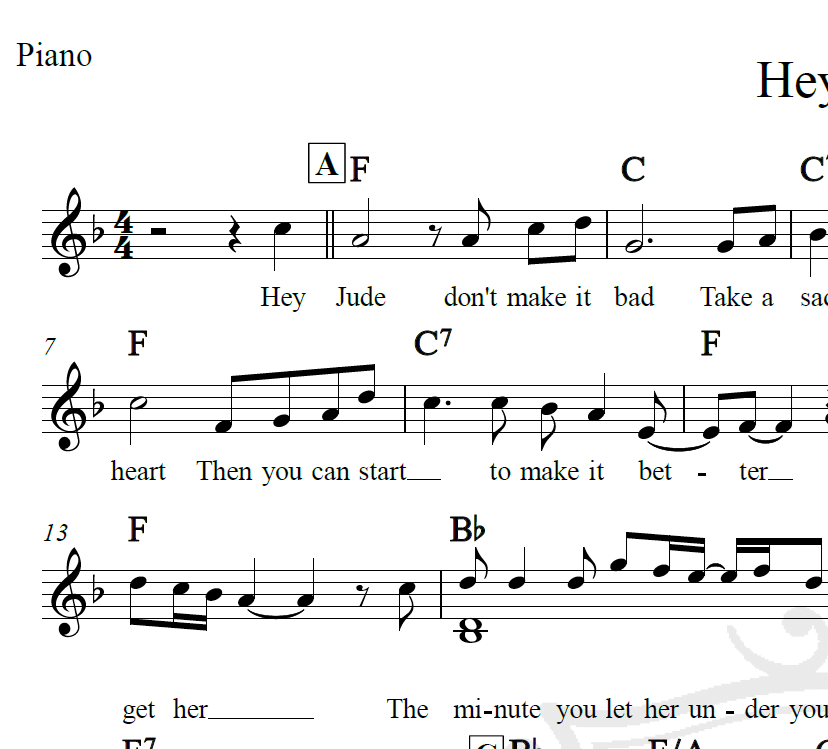 Hey Jude – The Beatles – Piano/Vocal
