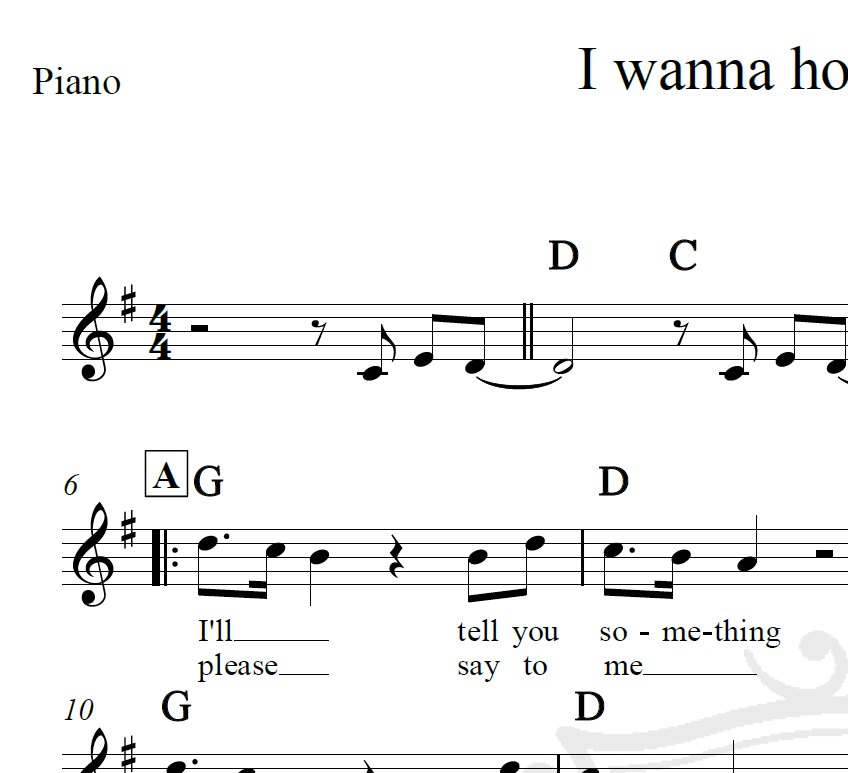 I wanna hold your hand – The Beatles – Piano/Vocal