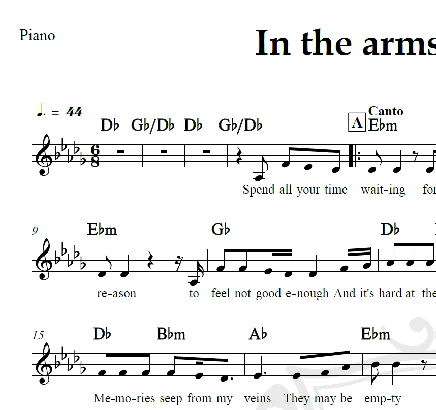 In the arms of an angel – Sarah McLachlan – Piano/Vocal
