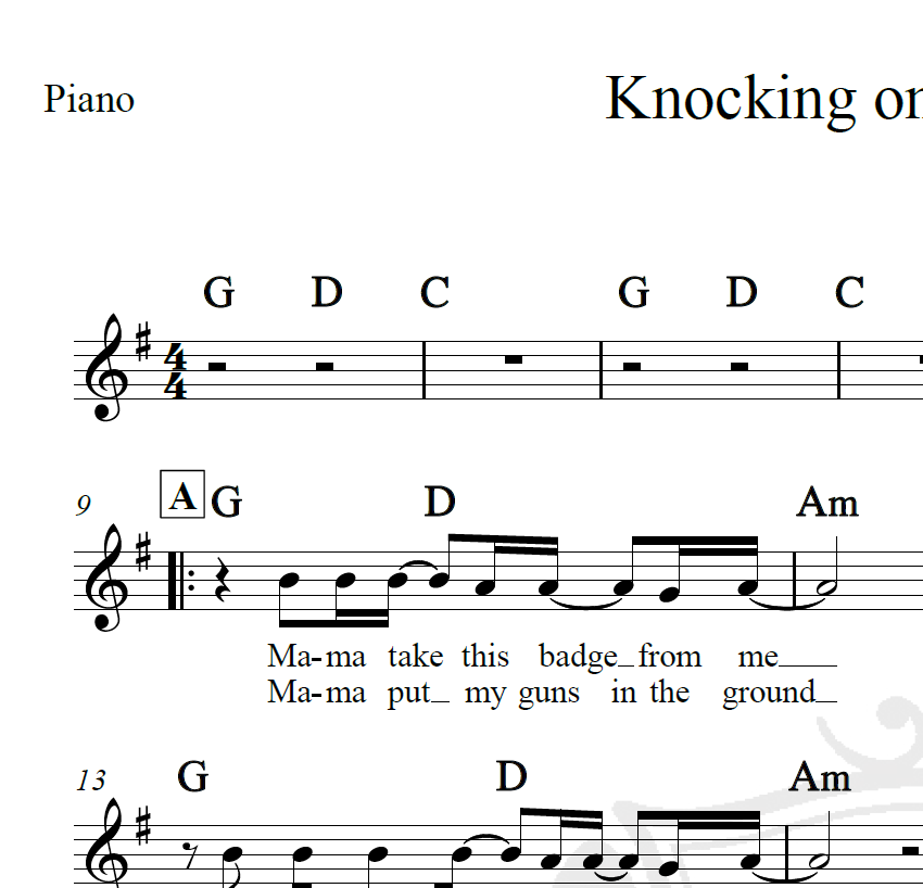 Knocking on heaven’s door – Bob Dylan – Piano/Vocal