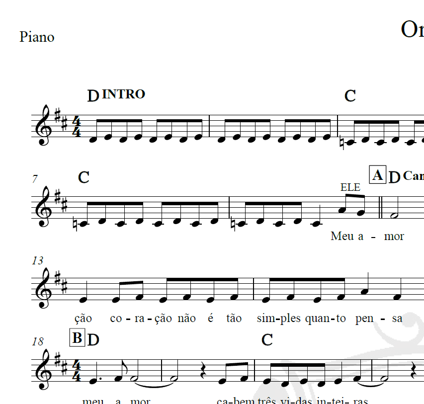 Oração – A Banda mais bonita da cidade – Piano/Vocal